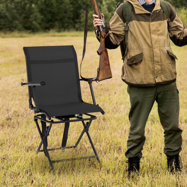 1.Foldable and Light Weight Design: The swivel chair can be folded in few seconds and need no additional tools since the fixing strips and carrying strips are already attached. Besides, it only weighs 14.5 lbs with compact folded size, you can put it on the back and carry it to any spot you want.